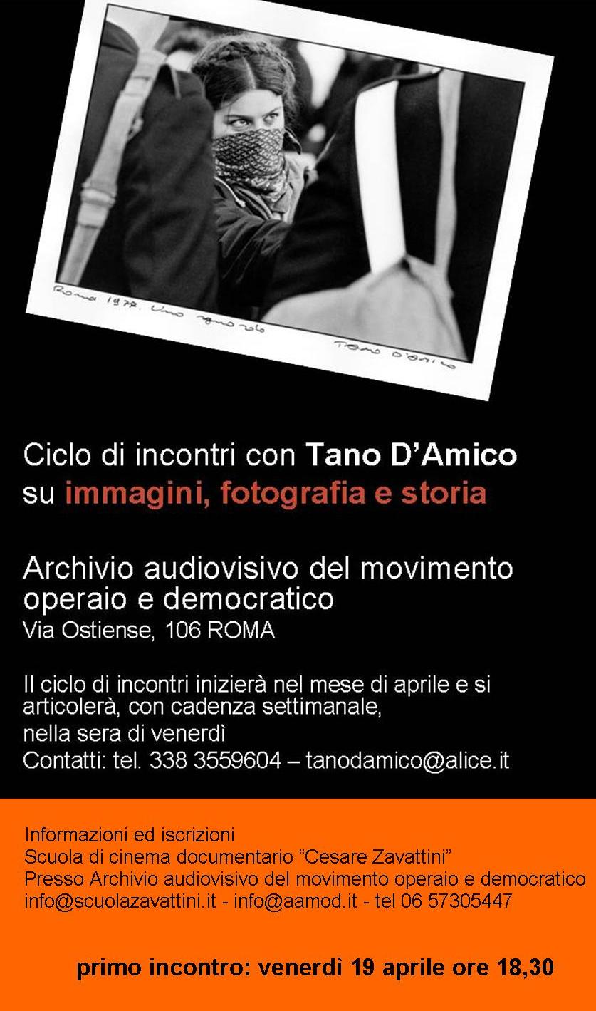 Tano D’Amico tornerà a conversare in amabili lezioni all’Archivio audiovisivo del movimento operaio e democratico, nell’ambito della Scuola di cinema documentario Cesare Zavattini, da venerdì 19 aprile 2013, ore 18.30 (ingresso libero).